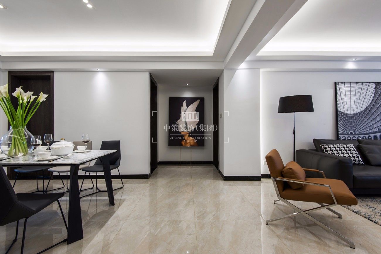 (1)本案以簡化的設計理念勾畫出現代風格的獨特空間效果,將簡潔與質感緊密融合,相互貫通。整個空間以黑白色為主橘色為輔,搭配質感家具、個性配飾,打造出簡潔而優雅的的生活空間。 (2)根據業主的生活方式和居住人口的比例關系,設計師對原始戶型進行了新的規劃和定位,無論在空間利用上還是房屋布局上都對其提出了品質的要求。 空間闡述 該布局設計主要為入戶空間彰顯整體家居品質感。現代風格突出了生活的舒適和自由,不論是簡約干凈的背景設計,還是個性鮮明的軟裝配飾充分突出了其設計的素雅和簡潔。直線條的設計是現代風格非常重要的運用元素。黑白色調的陳設品搭配局部彩色的小品設計,讓整個空間主次分明更符合業主對極簡的追求。整個空間無主燈的設計讓整體更加清爽干凈。