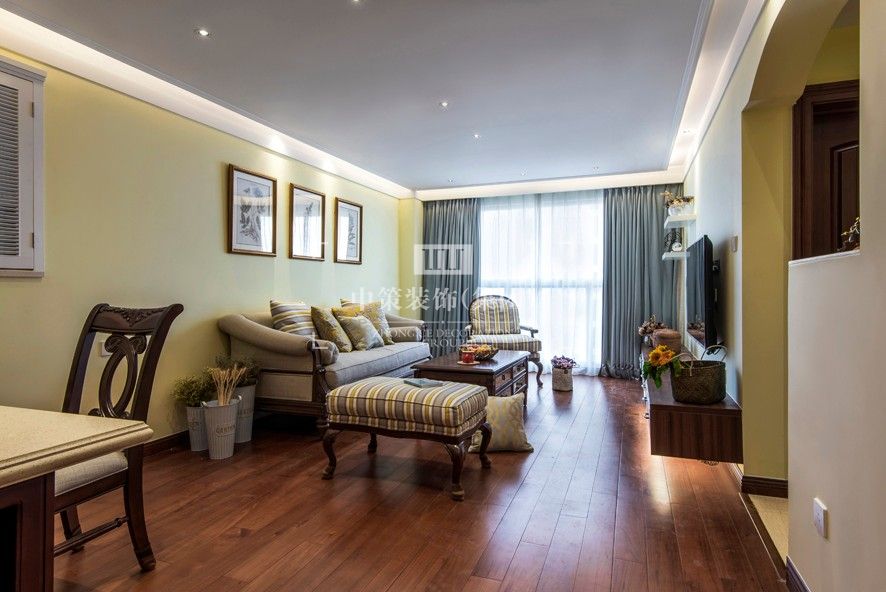 (1)本案以素雅簡潔的設計手法打造美式空間的古樸韻味,將簡潔與質樸與華麗緊密融合,相互貫通。整個空間以暖色為主局部彩色為輔,搭配木質感家具,打造出簡潔而優雅的的生活空間。 (2)根據美式風格的元素特點,設計師對原始戶型進行了新的規劃和定位,滿足空間的利用以及整體家居的舒適感。整體元素及色彩的運用都體現著設計對生活的理解。 空間闡述: 整體空間設計以美式特有的厚重感為主。開放式家居及島臺設計,加上帶有歲月滄桑的配飾充分突出了其設計的素雅天然感。整體空間的設計都以美式風格為主,感受業主的生活方式,空間流線及規劃都更人性化。