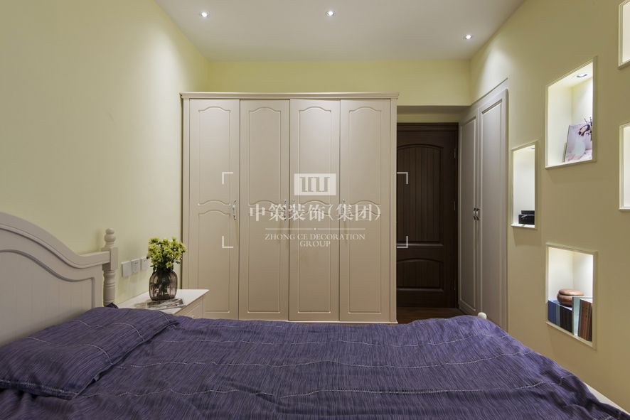 本案是新婚小兩口婚房,希望是一個舒適安逸的環境,營造一種溫馨甜蜜的家庭氛圍,所以本案的基礎色調采用了較為明亮的白色、米色調,用藍色和黃色加以點綴。