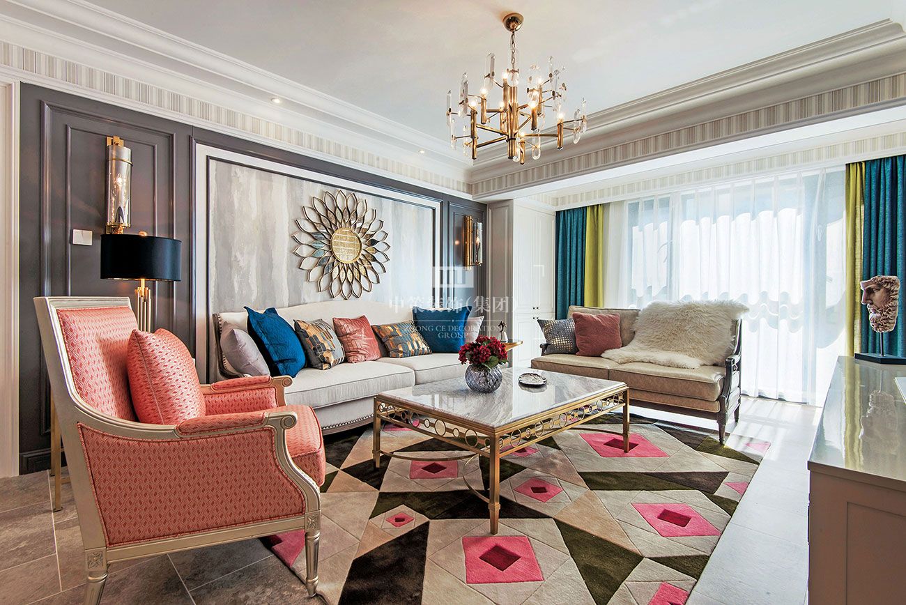 客廳空間最引人注目的是,用亮麗色彩點亮家居的同時,依舊保持其優雅的格調。在優雅的氛圍里,色彩鮮艷的桌椅,端莊華美的軟裝,無一不在時尚的最前沿。